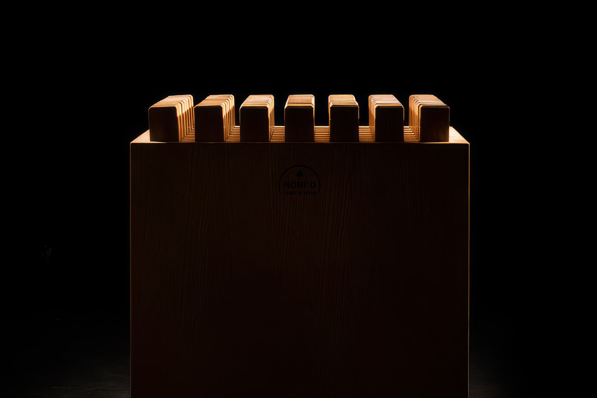Med sin strømlinjeformede, kubiske form forventer du ikke et komfortabelt sete. Opplev selv hvordan de 49 treklossene tilpasser seg kroppen din når du sitter, og oppmuntrer til en aktiv og riktig holdning.