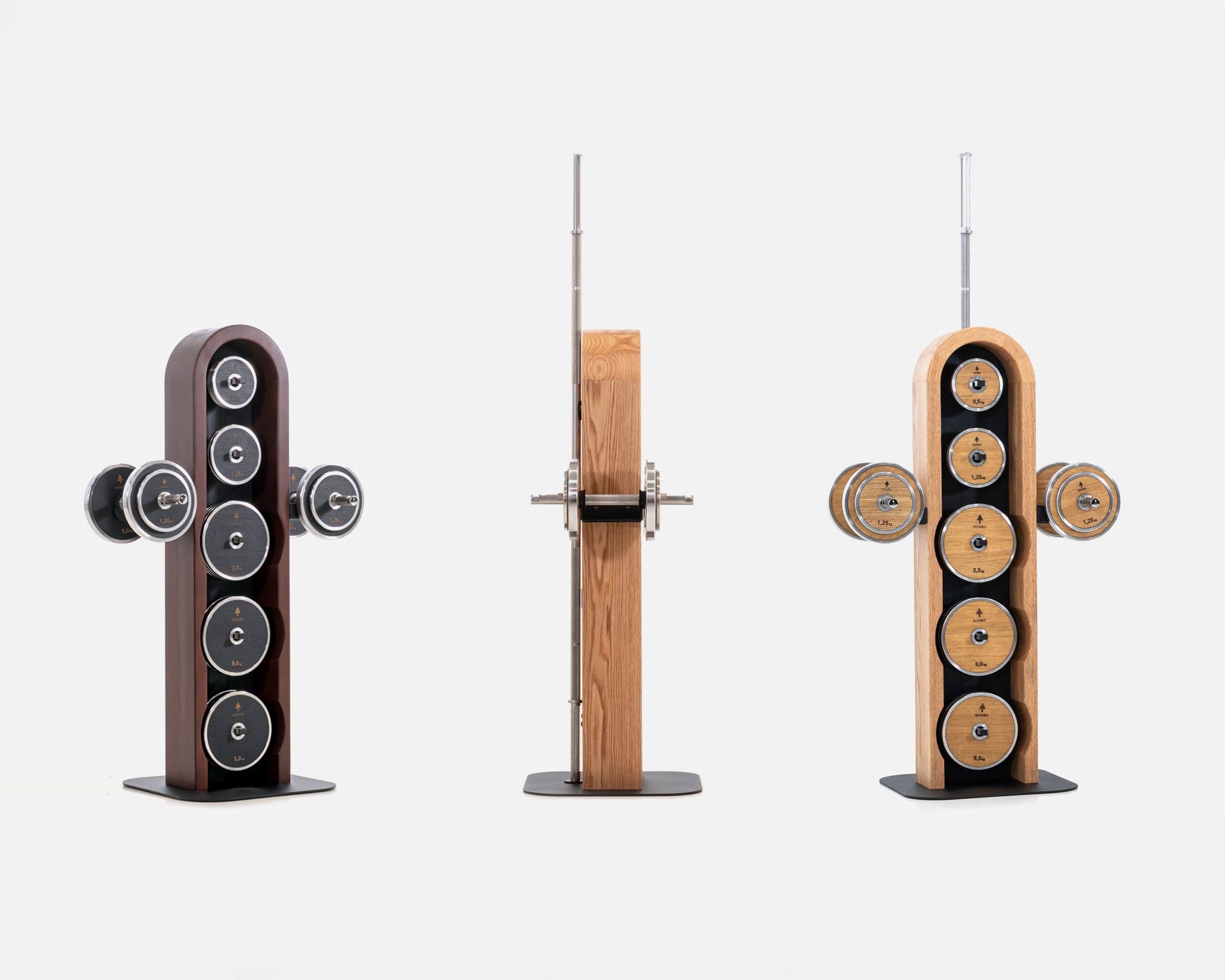 WeightPlates Tower er designet i en harmonisk blanding av massivt tre, pulverlakkert stål og børstet rustfritt stål - et statement-objekt for treningsrommet ditt. Tårnet har plass til individuelle vektskiver og fullastede vektstenger, slik at du kan holde orden i treningsrommet ditt. De lange vektstengene (Pumpers) oppbevares på baksiden, i oppreist posisjon.