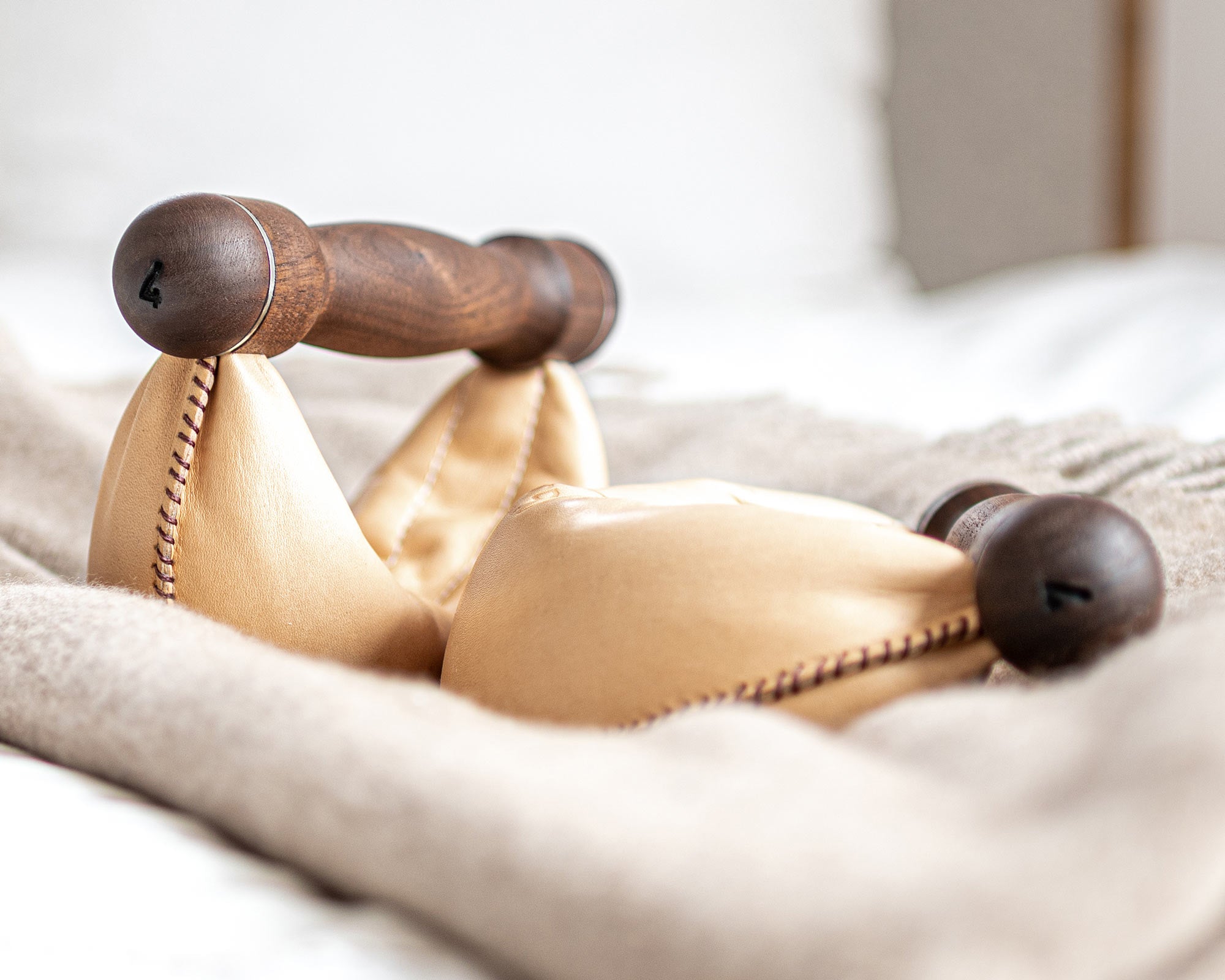 Alle NOHRD SwingBells er håndsydd i ekte lær og er dekorative å ha i hjemmet. Læret er håndbehandlet i Tyskland, der det er vegetabilsk garvet, noe som gir en autentisk og karakteristisk lærduft